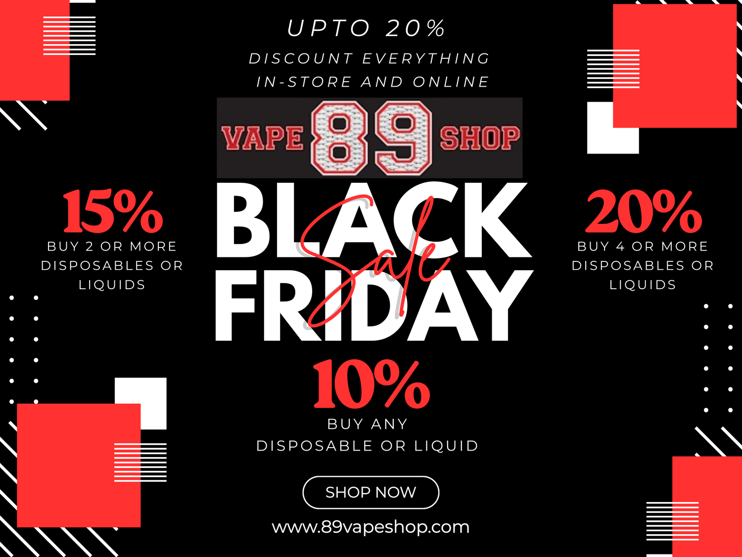Get ready for the biggest savings of the year! This Black Friday, stock up on your favorite vapes, e-liquids, pods, and accessories with unbeatable discounts. Enjoy tiered deals on disposables and liquids — Buy 2+ and get 15% off, Buy 4+ and get 20% off, plus 10% off all vape hardware and accessories. Mix and match your favorites and save big while supplies last. Don’t miss out — these exclusive deals are only available for a limited time!