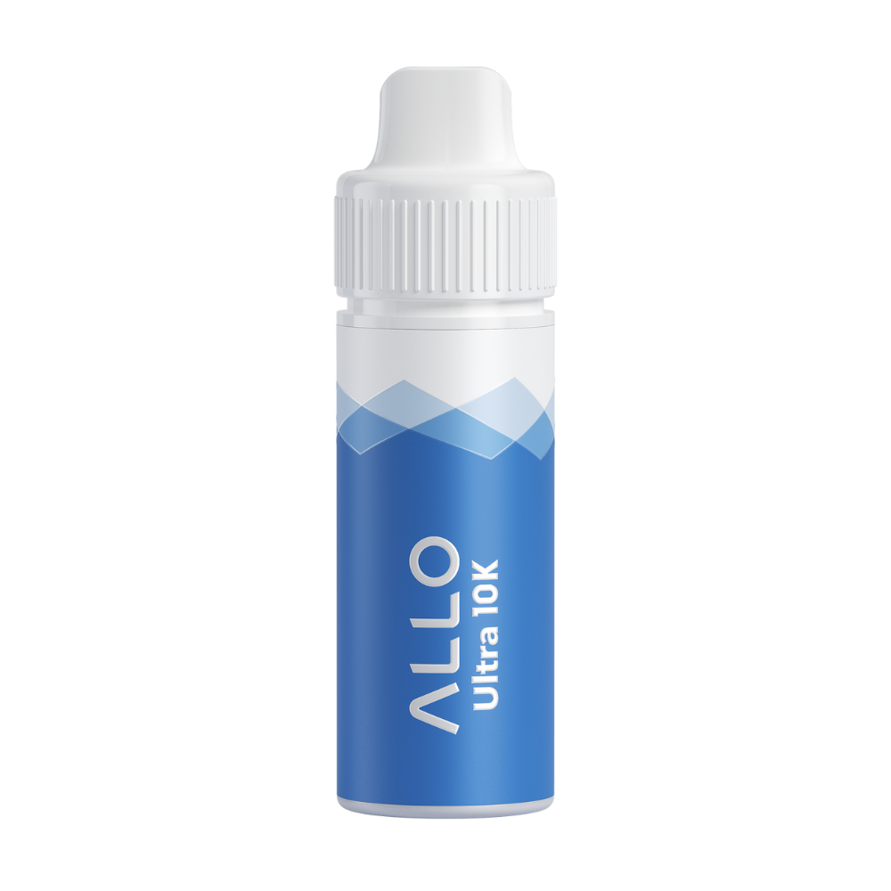 Allo Ultra 10K Blueberry Ice starter kit delivers a cool burst of frosty blueberries with every puff. This hybrid disposable combines bold fruit flavor with icy freshness in a device that offers both convenience and long-lasting performance thanks to its rechargeable battery and replaceable pod system.